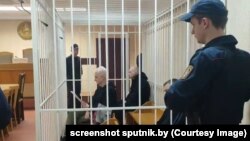 Правозащитники, сидящие в металлической клетке, общаются с судьей на белорусском языке и заявляют ходатайства, чтобы весь процесс проходил на белорусском языке, а также чтобы с них сняли наручники, поскольку это унижает их достоинство, пишет "Вясна".