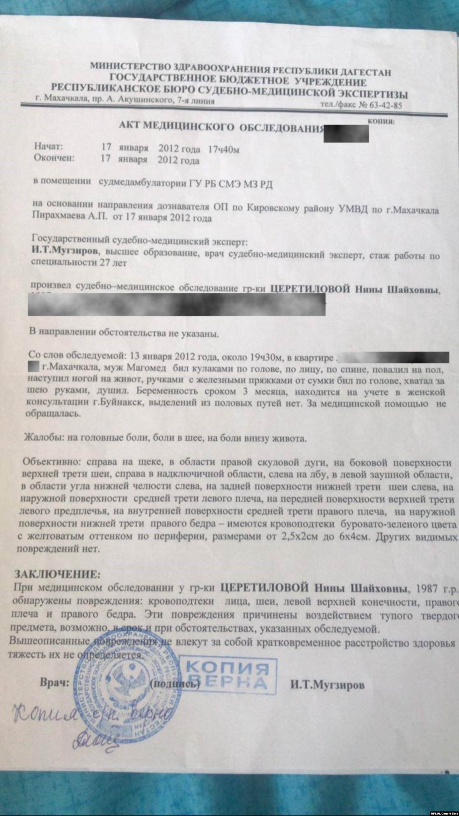 Когда она пришла в себя и добралась до дома, сразу вызвала полицию. Судмедэксперты диагностировали у нее сотрясение мозга, ушибы мягких тканей головы и грудной клетки. Эти травмы квалифицировали как причинение легкого вреда здоровью. Уголовное дело полиция и в этот раз не завела – Руслан направил встречное заявление о том, что сам пришел и забрал своего сына.