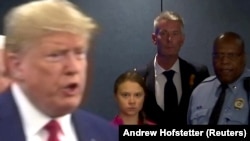 Президент США Дональд Трамп, который присутствовал в зале во время речи Тунберг, с сарказмом отозвался о ее речи в твиттере.