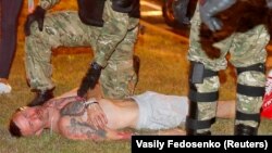 "Задержание произошло внезапно. Мы покинули переезд на Немиге и двинулись к стеле на проспекте Победителей, – рассказал он. – В тот момент рядом остановилась белая "маршрутка" (микроавтобус), из нее выбежало 5-6 человек, может быть, больше человек в черной одежде с надписью "ОМОН". Они напали на нас и начали загонять в машину. Когда я увидел их бегущими, я понял, что они позади нас. Я встал на колени, протянул руку, чтобы показать, что у меня ничего нет. Но это их не остановило".