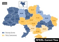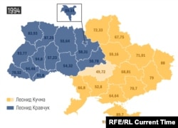 Президентские выборы 1994 года стали первыми, результаты которых показали начало электорального разделения страны на условные "Восток" и "Запад". В том году Леонида Кучму поддержали преимущественно восточные регионы, а Леонида Кравчука – западные.
