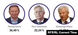 - 31,17% голосов избиратели отдали экс-премьер-министру Леониду Кучме.